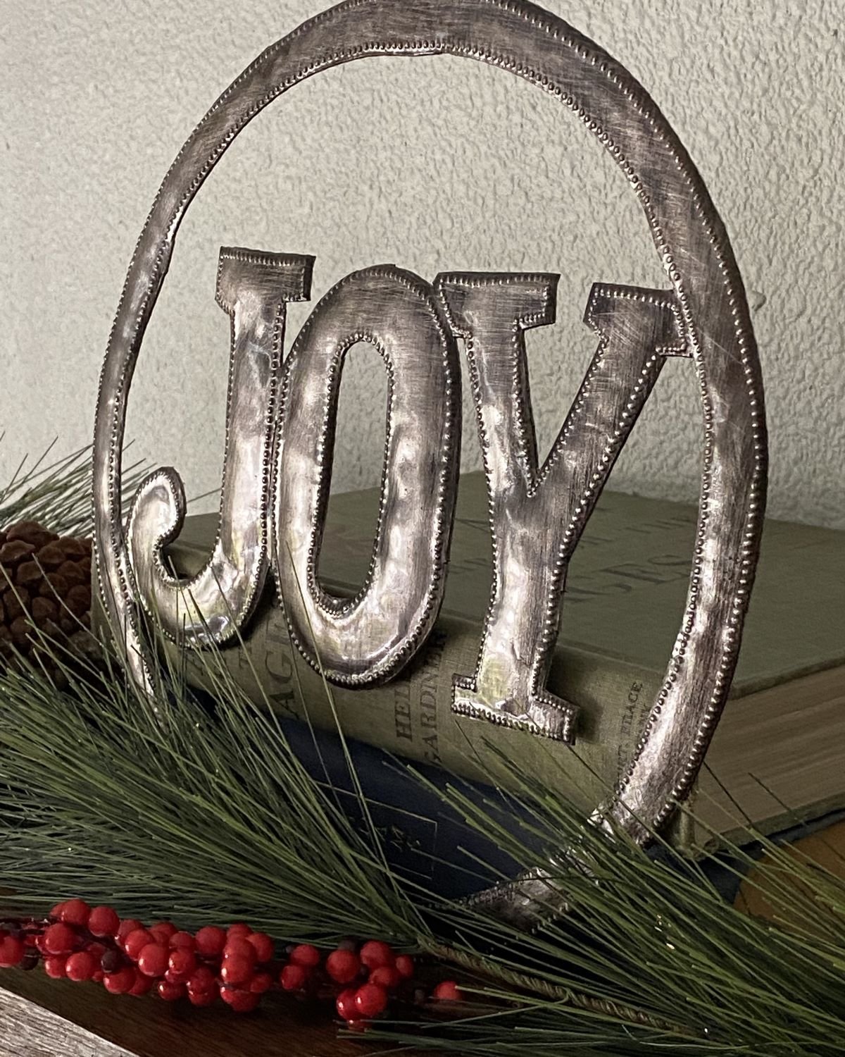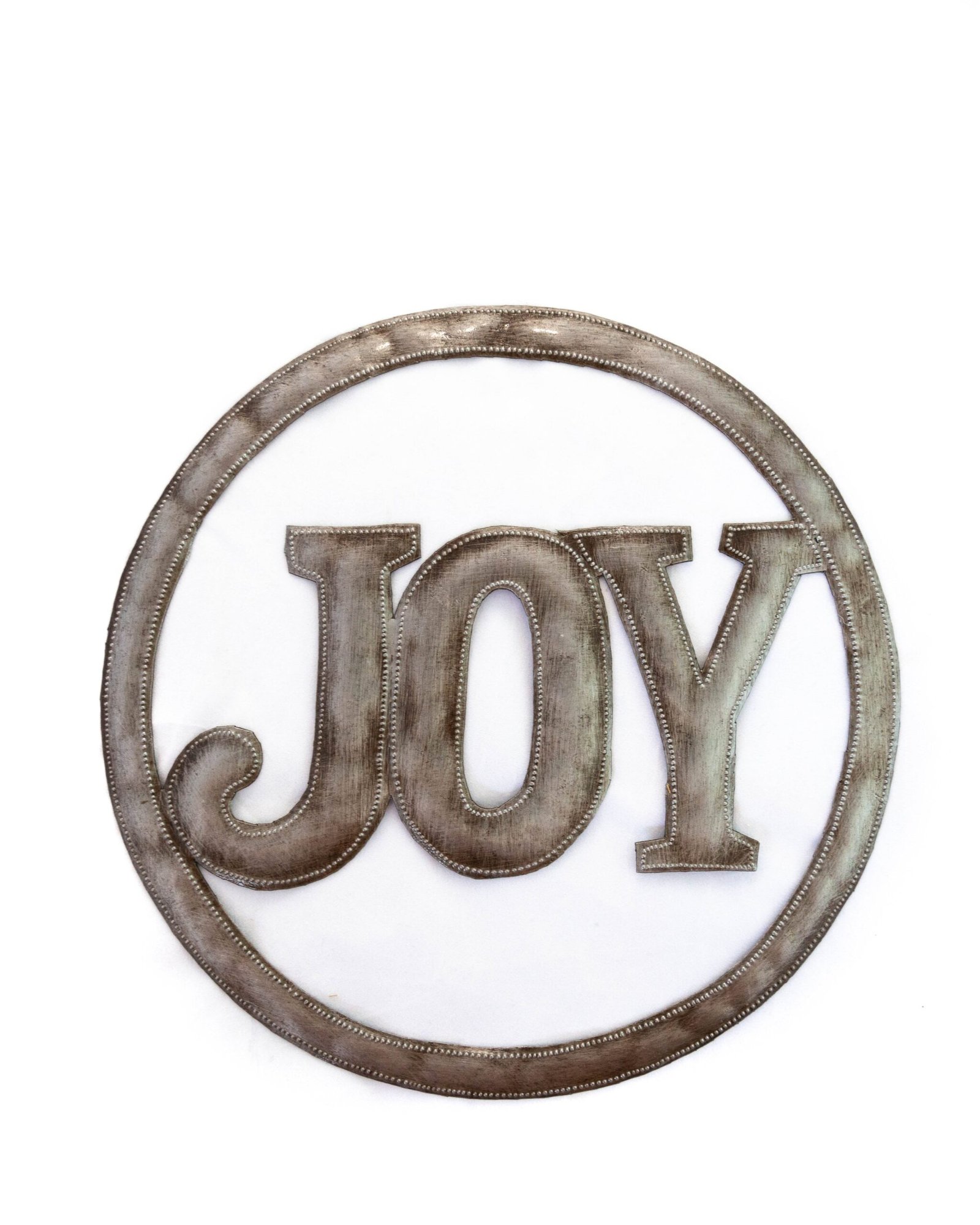 The Joy Circle Metal Art is made from discarded oil drums in Haiti. making treasure out of trash. Metal artisans. such as Belony who made this piece for us. cut. chisel. and hammer the metal all by hand. You will be amazed by the attention to detail! Own or gift a traditional piece of Haitian metal art and support hard-working artisans!