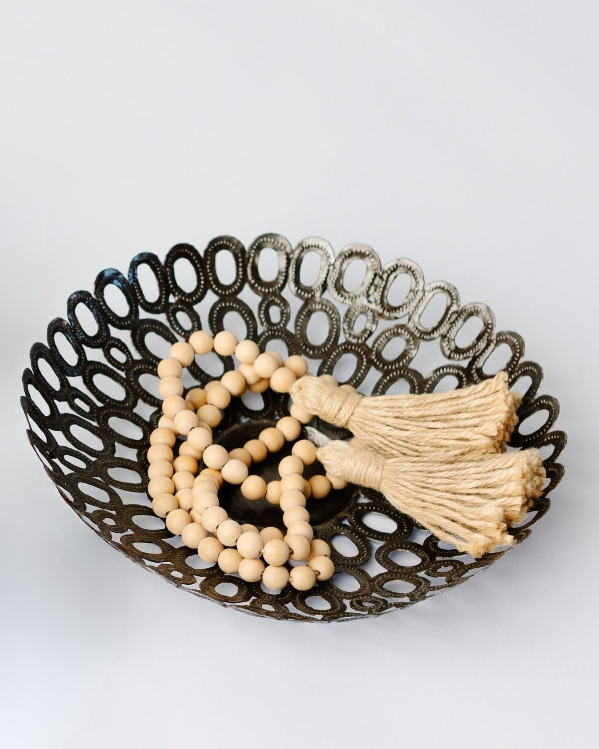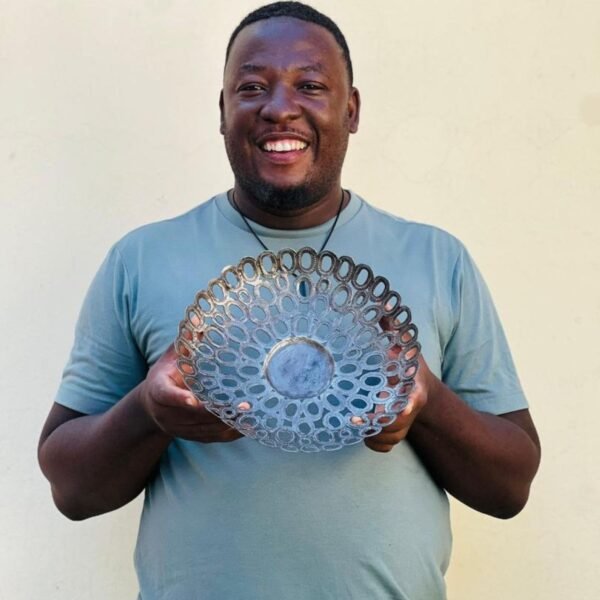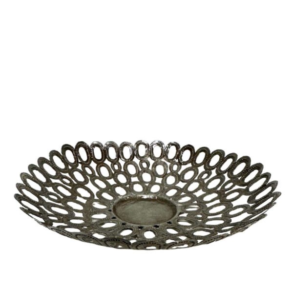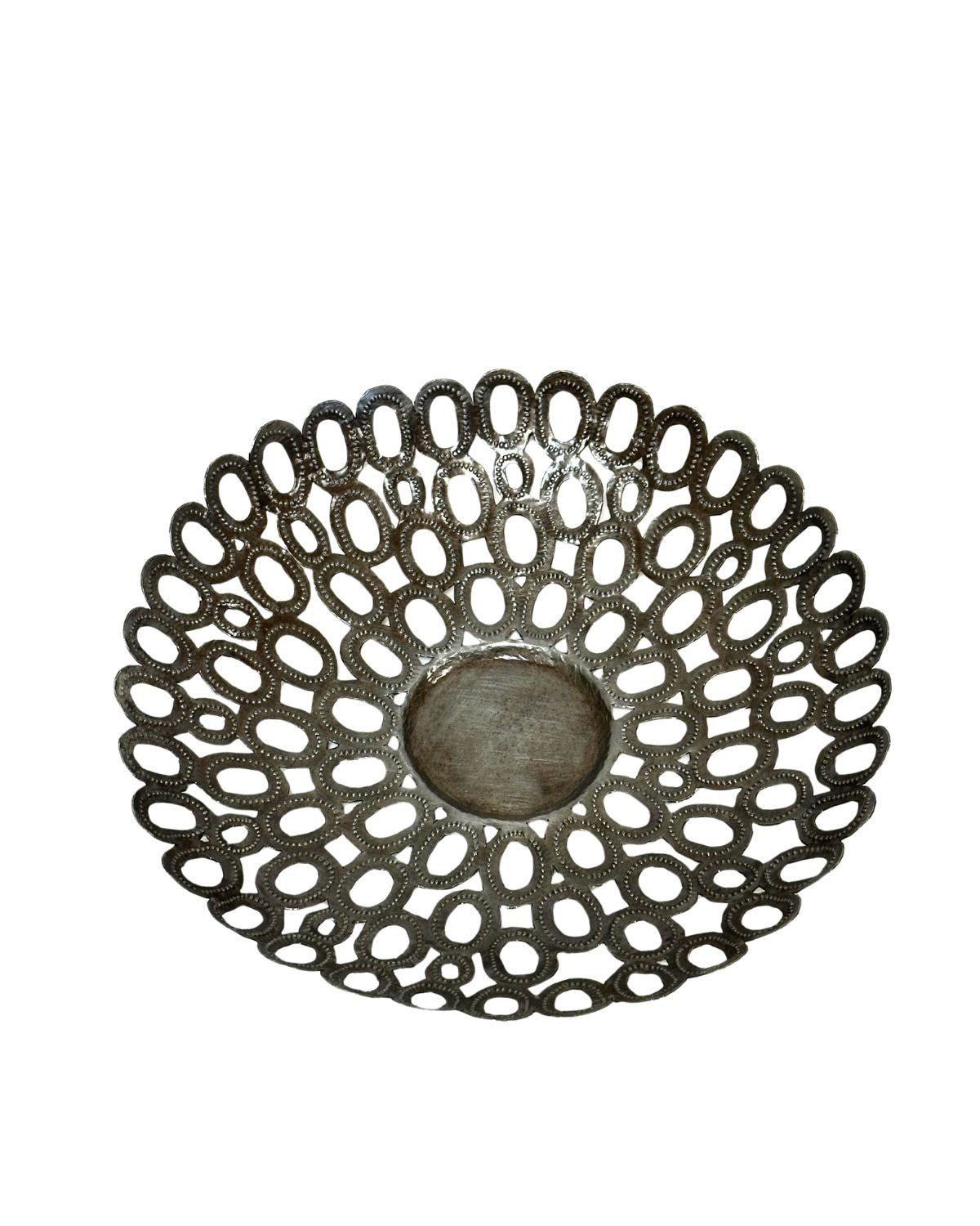 Designed by Haitian metal artisan. Jacques. this decorative bowl is filled with detail and all done by hand!? The Metal Circle Bowl is made from discarded steel oil drums. turning trash into a work of art. The story behind this piece is extraordinary. When you purchase metal art from Vi Bella. you are helping keep traditional Haitian metalsmithing alive and providing support for these hardworking individuals and their families.? Thank you!